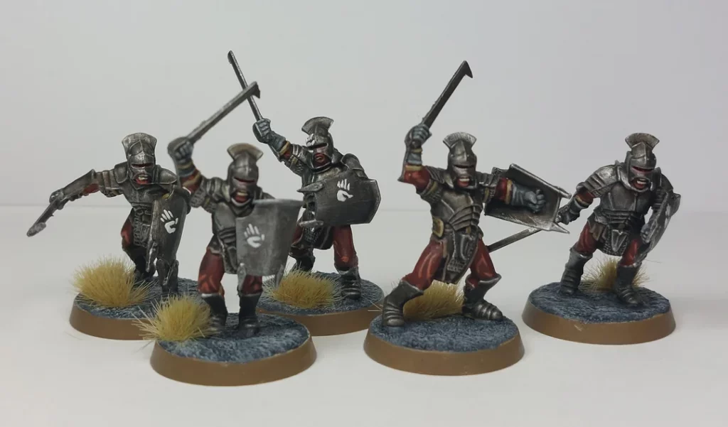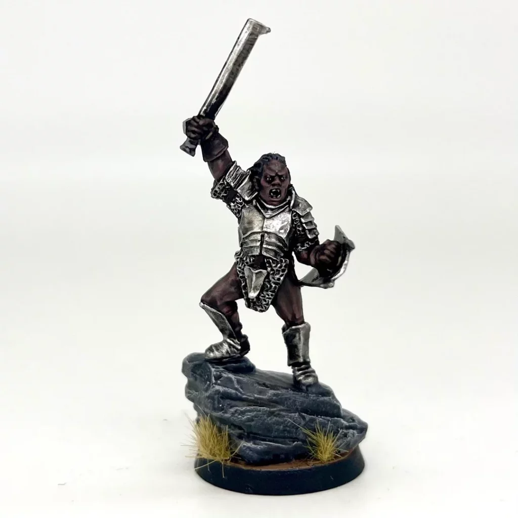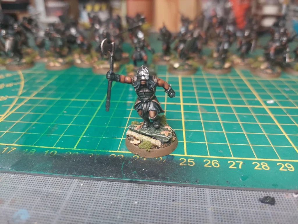Le choix le plus évident est le Capitaine Uruk, bien amélioré par les règles d’armée. Il vous offre une Force 5 bienvenue et surtout une Défense 7 voire 8 en Mur de bouclier. Il s’agit d’un choix versatile et souvent rentable. Pas grand-chose à dire de plus sur lui, prenez-en au moins un dans chacune de vos listes.