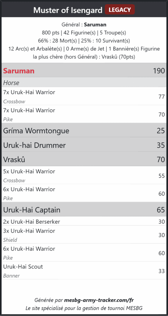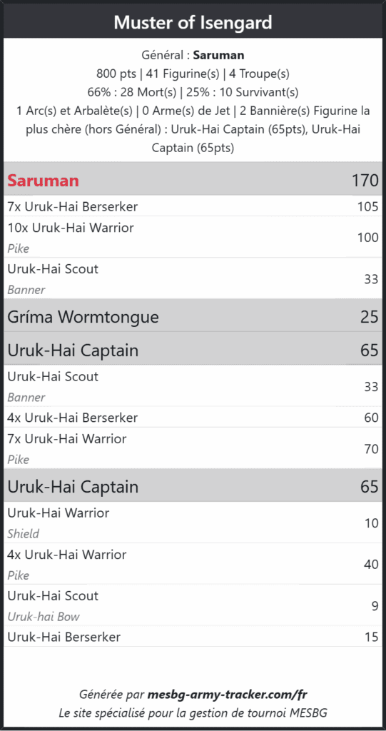 Merci beaucoup pour cet excellent article ! Quelles listes l’armée d’Isengard craint elle le plus?