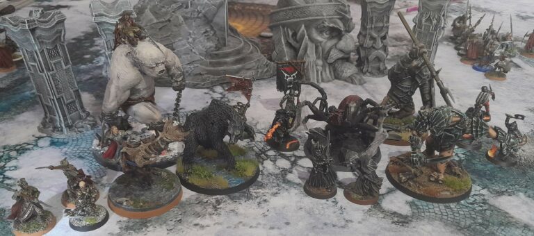Sur le papier, leur liste ne nous fait pas rire. Certes, notre infériorité numérique est moins grande que prévu. Mais la double immobilisation compliquera la vie de Beorn, d’autant qu’elle est couplée à deux trolls capables de frapper. La présence de trois monstres sera un vrai problème pour Thranduil, qui risque de subir des projetés (surtout de Shelob Mouvement 10, Intelligence 5+). Enfin, le Troll-Brute devra réussir à se faufiler entre les troupes sans croiser ces trois menaces adverses.
